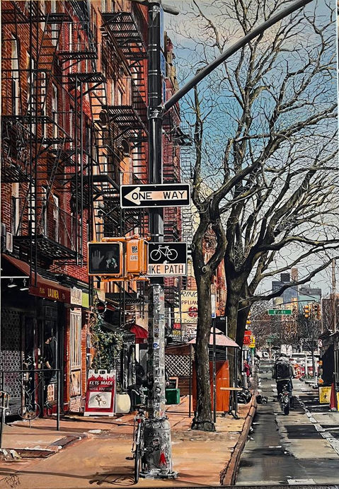 The paintings are based on my own photographic material, with an emphasis on composition, colour, light and contrasts. The focus is on the experience of the street and the expression of recorded impressions.